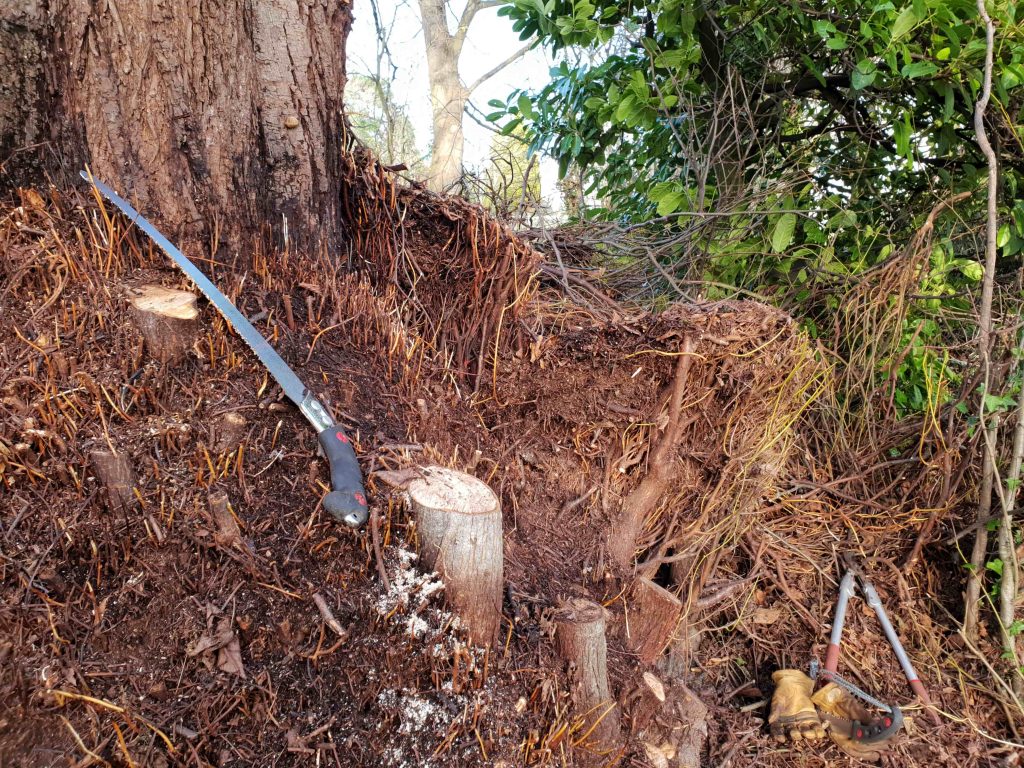 Clearing this growth, and the accumulated layers of litter, you couldn’t be sure what the result would look like – the pruning cuts might be too large and numerous to leave a good look.